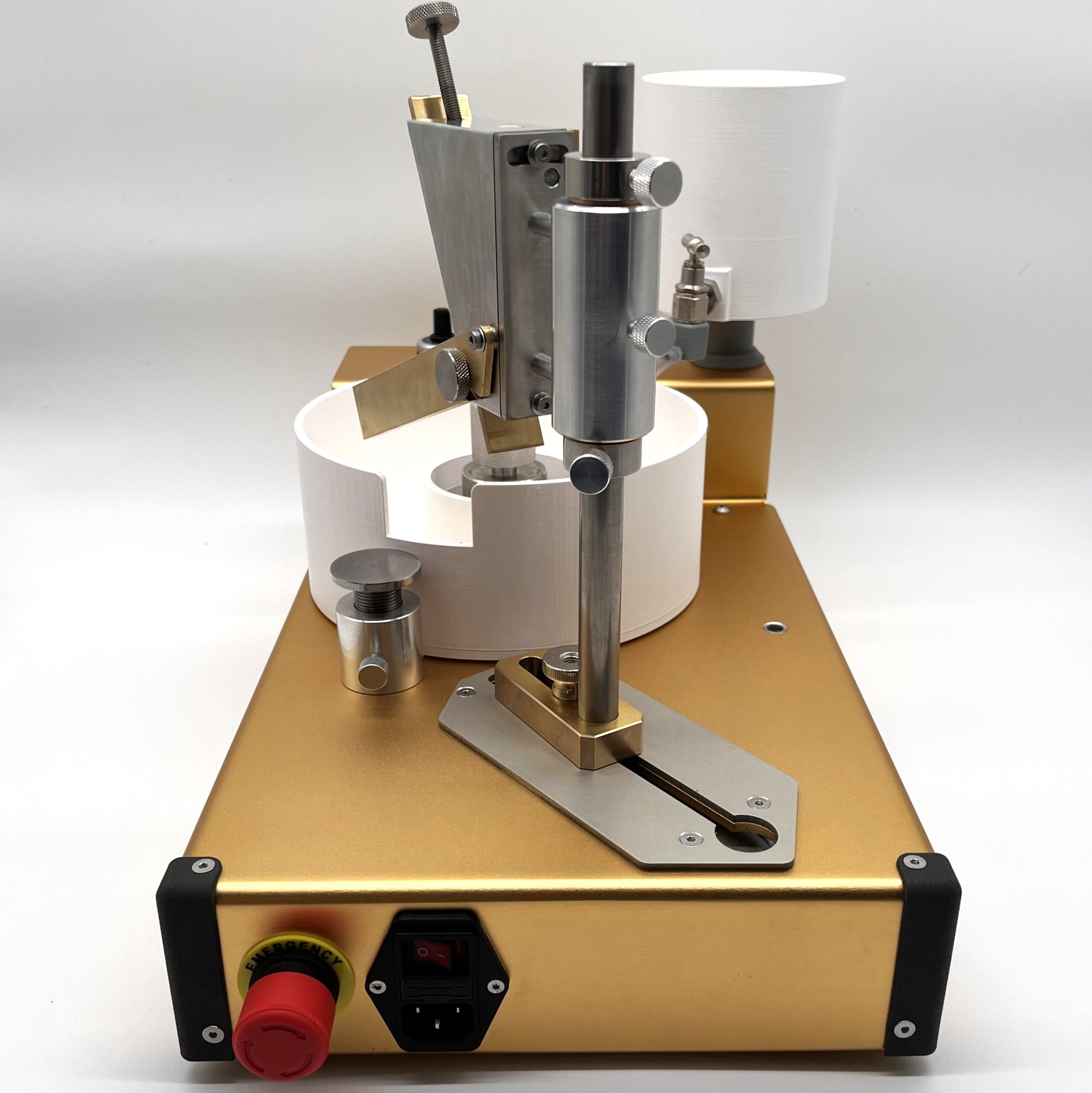 Une machine de base pour la taille à la Française, véritable petit établi de lapidaire, pour disque de 15 cm (6 pouces) avec :