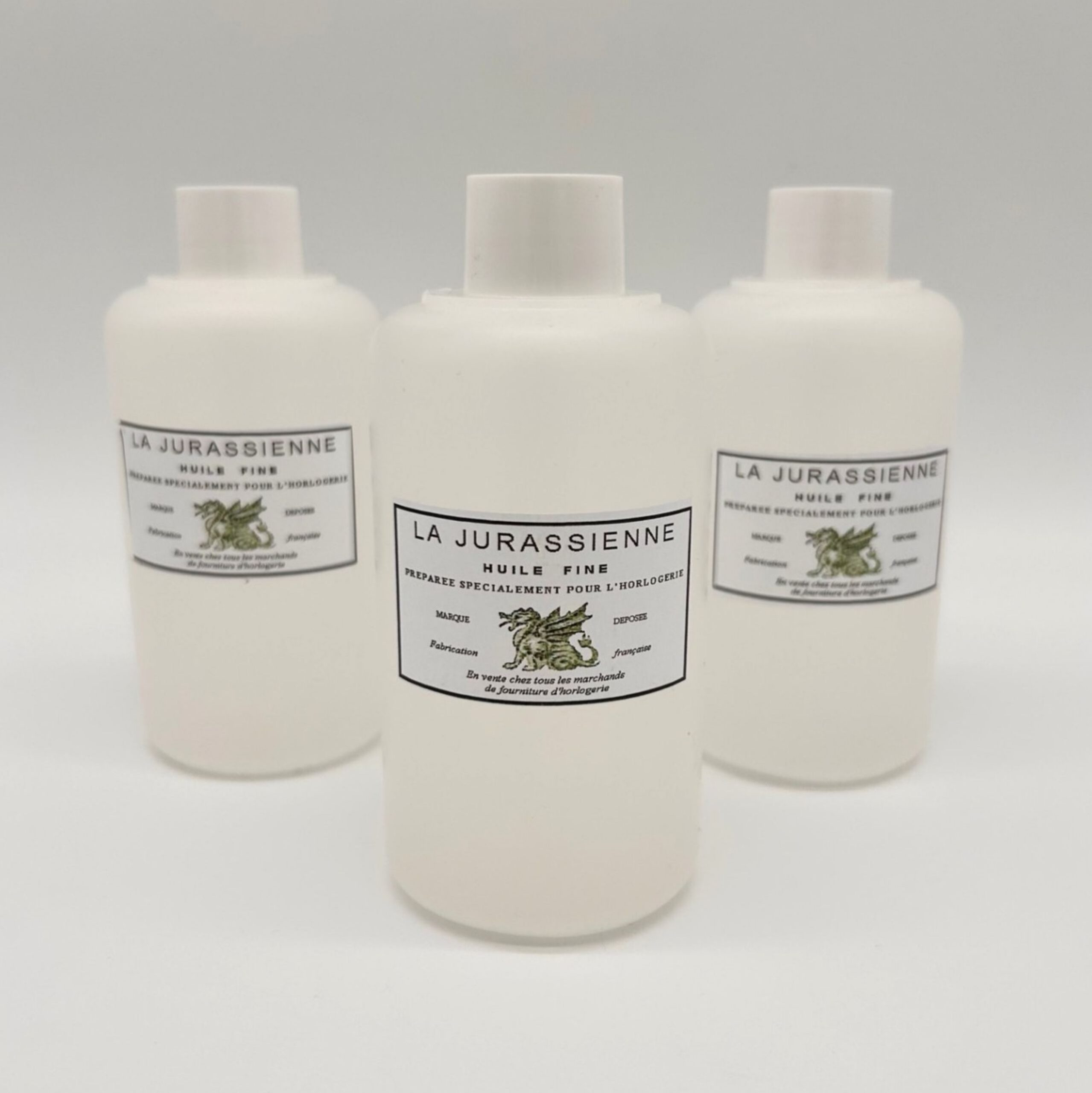 Huile fine la jurassienne, 250ml. Utilisable pour lubrifier les mécanismes et pour préparer la discs de polies en étain ou en cuivre avec la poudre de diamant.